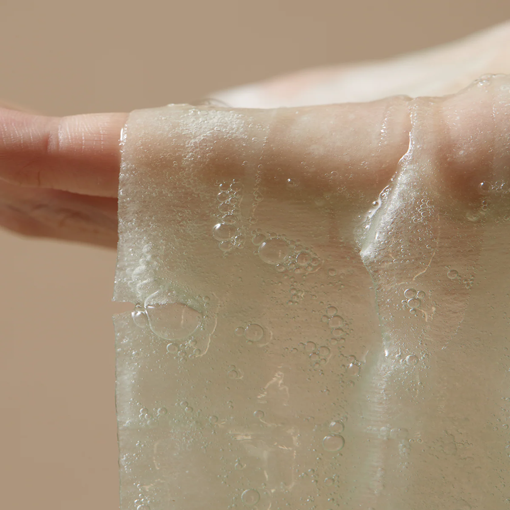 Diese Tuchmaske besteht aus pflanzlicher Zellulosefaser, angereichert mit 61 % Beifußextrakt. Die Textur spendet reichhaltige Feuchtigkeit, ohne zu beschweren, hilft der Haut, die Talgproduktion zu kontrollieren und Hautschäden zu reparieren.